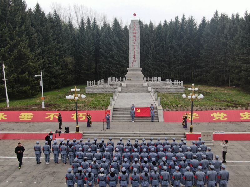 活動(dòng)中,全體人員換上了紅軍服,身臨其境感受當(dāng)年抗聯(lián)將士為民族、為國家浴血奮戰(zhàn)、不怕犧牲的抗聯(lián)精神。在楊靖宇烈士殉國地遺址,全體人員唱響國歌,以沉痛的心情瞻仰了楊靖宇烈士遺像并向烈士紀(jì)念碑敬獻(xiàn)花籃,默哀致意。在鮮紅的黨旗下,全體黨員舉起右手,握緊拳頭,開始重溫入黨誓詞宣誓活動(dòng),讓黨員在黨旗下接受心靈的凈化和洗禮,牢記共產(chǎn)黨員的政治責(zé)任和歷史使命,永葆共產(chǎn)黨員的政治本色。